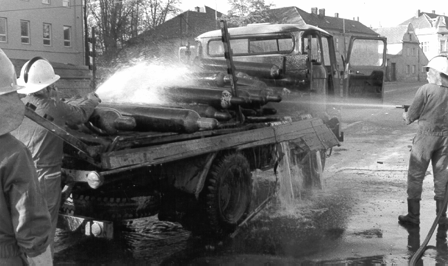 - 28. října 1980 - požár nákladního automobilu n. p. Technoplyn Č. Budějovice, plně naloženého tlakovými lahvemi s acetylenem a kyslíkem. Požár, při kterém hrozilo nebezpečí výbuchu tlakových lahví a hrozilo nebezpečí zranění velkého počtu osob a velkých materiálních škod, likvidovala jednotka KVPÚ.