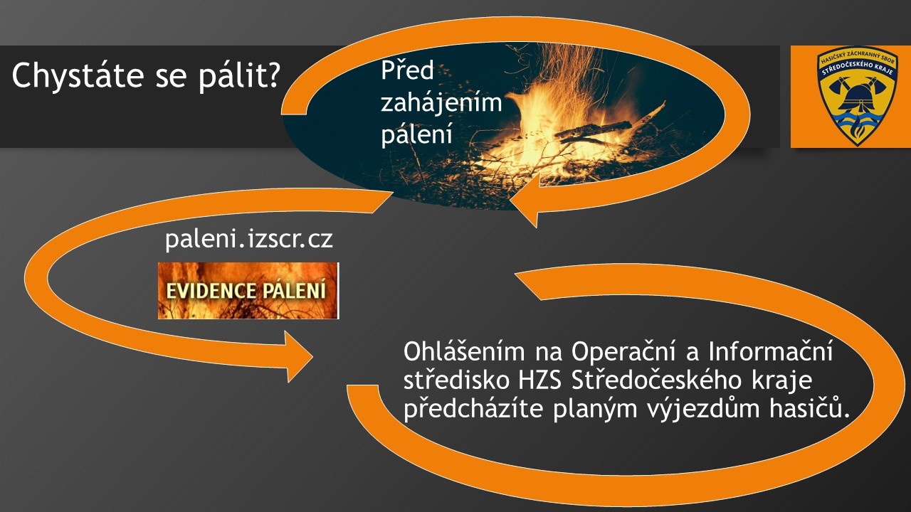 - I v případě, že čarodějnickou akci pořádají fyzické osoby, je dobré toto pálení oznámit hasičskému záchrannému sboru příslušného kraje. Telefon, který při zadávání ohlášení pálení uvedete, mějte u sebe, aby mohli hasiči provést zpětnou kontrolu, pokud by náhodou někdo nahlásil, že například u vás na zahradě hoří.