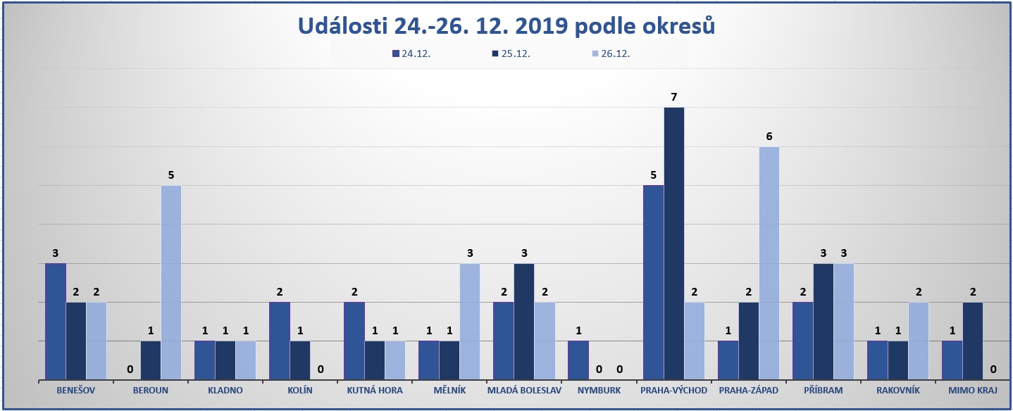 Letošní Vánoce byly ve srovnání s těmi loňskými o něco náročnější – během tří svátečních dnů zaznamenali středočeští hasiči 74 událostí, což je o šest více než loni. Nejklidnější situace byla na Nymbursku, kde v Sadské hasiči zachraňovali muže, který si chtěl na Štědrý den odpoledne vybrat hotovost z bankomatu ve spořitelně. Ven se však už nemohl sám dostat, neboť prosklené vchodové dveře do pobočky otvírané kartou se zasekly.