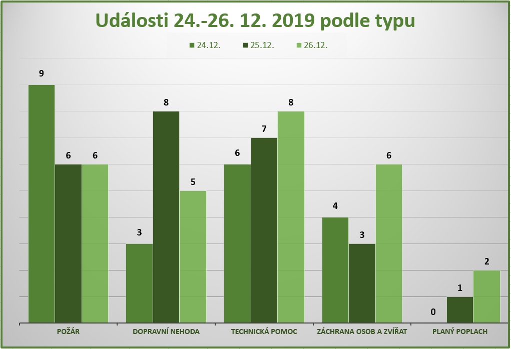 V úterý 24. prosince vyjížděli hasiči celkem ke dvaadvaceti událostem, z toho k devíti požárům.