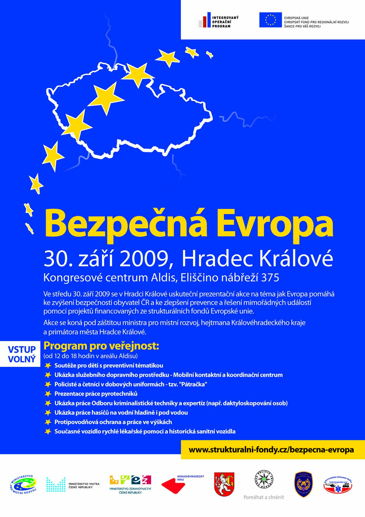Ve středu 30. září 2009 se v Hradci Králové uskuteční akce Bezpečná Evropa. Akce se skládá ze dvou částí – odborné konference a prezentace složek integrovaného záchranného systému pro veřejnost. Záštitu nad akcí převzal ministr pro místní rozvoj, hejtman Královéhradeckého kraje a primátor města Hradce Králové.
