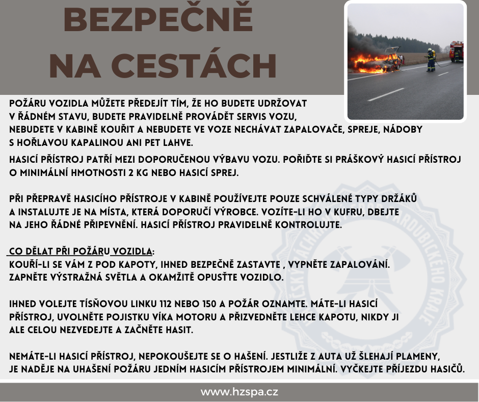 Jste na cesty řádně vybaveni? Hasiči radí, mějte ve vozidle hasicí přístroj.