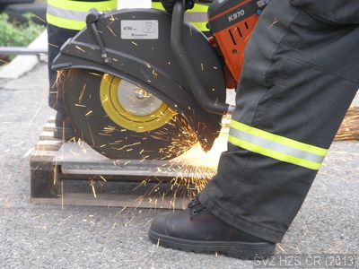 Jako nejvhodnější kotouč se k řezání uvedeného materiálu ukázal speciální abrasivní kotouč o průměru 400 mm, určený k řezání kolejnic. Kotouče o průměru 400 mm včetně pil pro tuto velikost kotoučů však nejsou ve výbavě jednotek PO zcela běžné. Velmi dobré řezné vlastnosti měl pro uvedené materiály také nově vyvinutý diamantový kotouč FR – 3 od společnosti Husqvarna. Jeho univerzálnost, široká škála využití a dobré řezné vlastnosti jej předurčují pro záchranářské práce. Je vhodný pro řezání většiny materiálů, se kterými se lze v nouzových situacích setkat: