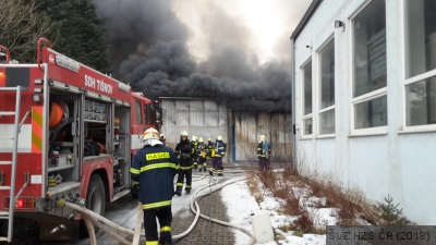 Brno – 22. 1. 2018 – Tišnov – požár skladovací haly