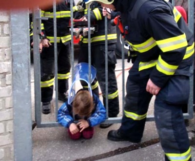 Asi jako lev v kleci si 10. dubna připadala sedmiletá dívenka z Prostějova. Těsně po páté hodině odpolední vyjeli místní hasiči k její záchraně, když při hře strčila hlavu do mřížované branky od vstupu ke kontejnerům a nemohla ji vytáhnout. Rozpínacím nářadím hasiči mříž roztáhli a holčičku osvobodili. Událost se obešla bez zranění.