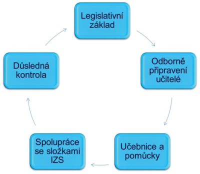 A v neposlední řadě bude MV-GŘ HZS ČR ve spolupráci s ostatními rezorty (MZ, MD a MO) neustále usilovat o zavedení samostatného předmětu s problematikou bezpečnosti do výuky jak v základních, tak ve středních školách. Poptávka po tomto řešení už není jen ze strany odborníků, ale stále více zaznívá i z úst samotných učitelů. Proto je tento úkol obsažen i v Koncepci ochrany obyvatelstva do roku 2020 s výhledem do roku 2030.