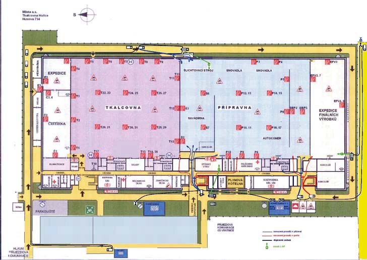 Objekt byl postaven v padesátých letech minulého století. Hala tkalcovny, přípravny a skladu je konstruována jako jeden požární úsek o rozměrech 70x 200 m, bezokenní budova s rovnou střechou. Strop tvoří betonové panely (nepochozí), mezi stropem a lepenkovou střechou je otevřený prostor v celé délce haly, ve kterém je umístěna klimatizace. V prvním nadzemním podlaží objektu se nachází tkalcovna, přípravna (návod, šlichtovna, snovárna, sukárna a sklad barevné příze), expedice finálních výrobků, dílny, dvě trafostanice a plynová kotelna. Ve druhém nadzemním podlaží objektu jsou umístěny archivy, kanceláře a zázemí pro zaměstnance.