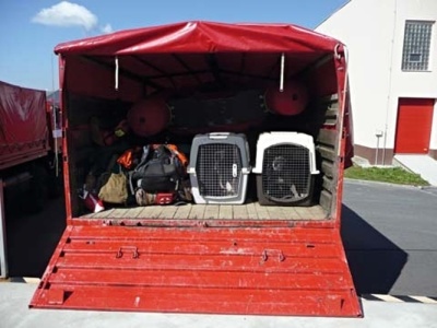 Přeprava vozidly je pro služební psy naprostou samozřejmostí. A to nejen za standardních podmínek, ale i za použití výstražného světelného a zvukového zařízení. Jsou zvyklí cestovat již od štěněcího věku, a to i na velké vzdálenosti. Přeprava osobními vozidly není ovšem jediným typem transportu, který používáme. Během výcviku se psi připravují na nejrůznější situace, zaměřené na zásahy ve ztížených podmínkách, takže běžně zvládají také přepravu na korbě nákladních vozidel, na motorových člunech, na čtyřkolkách nebo i transport na větší vzdálenost vrtulníkem.