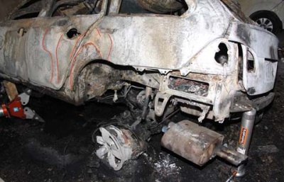 | Obr. 5 Osobní automobil BMW destruovaný požárem v podzemních garážích | |