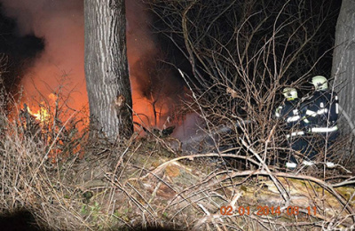 → velké množství odkorů, zbytků dřeva a pilin v okolí místa požáru,