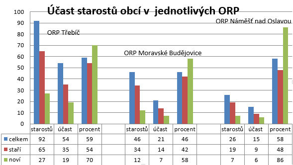 Tabulka 3 Účast starostů obcí v jednotlivých ORP v rámci působnosti HZS Kraje Vysočina, územního odboru Třebíč