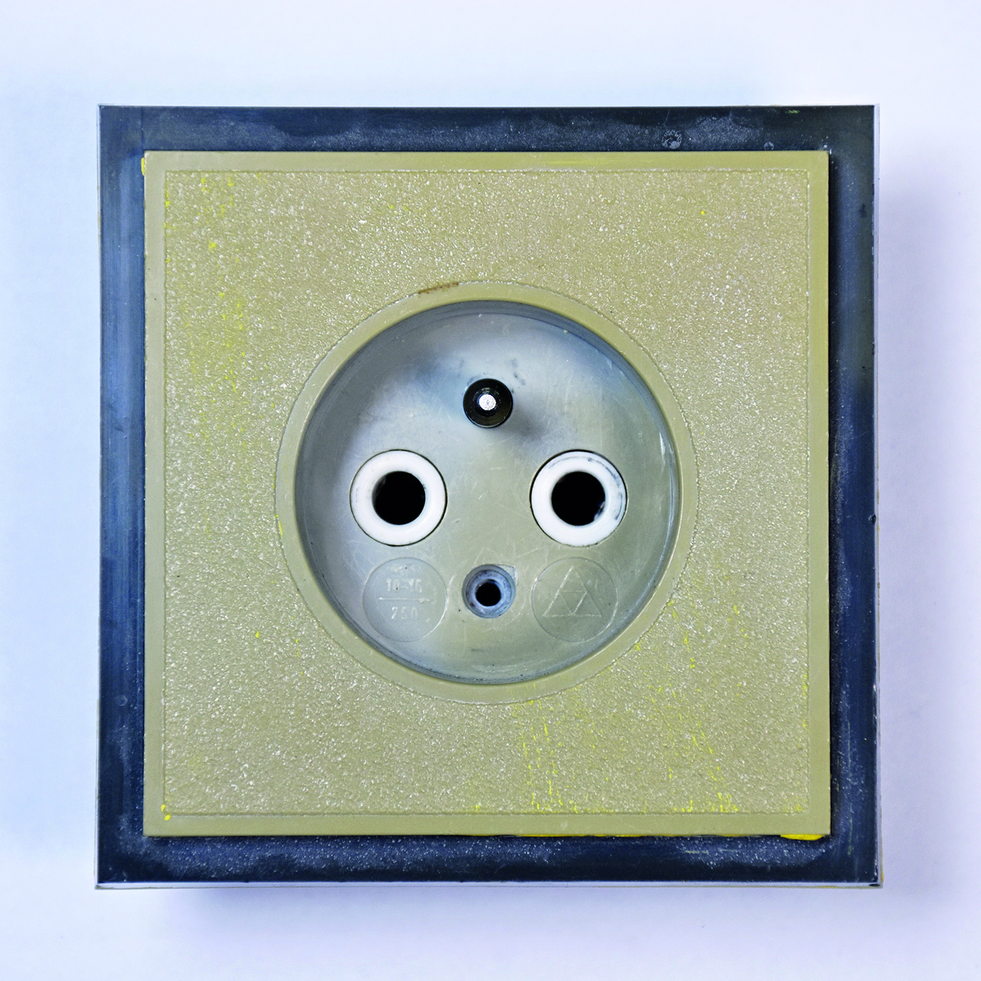 Obr. 1 Stopy tavení na kontaktu zdířky zásuvky následkem průchodu elektrického proudu přes přechodový odpor