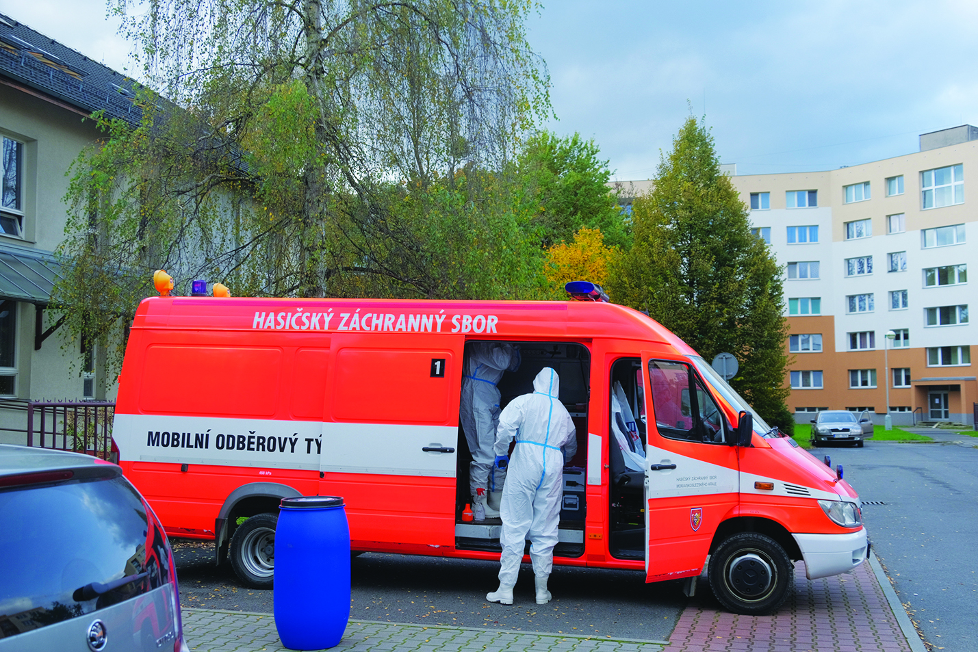 Mobilní odběrový tým HZS Královéhradeckého kraje odebral první desítky vzorků