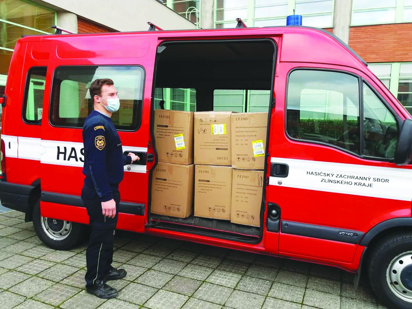 Další várku ochranných pomůcek rozvezli hasiči na stanovená místa Zlínského kraje.