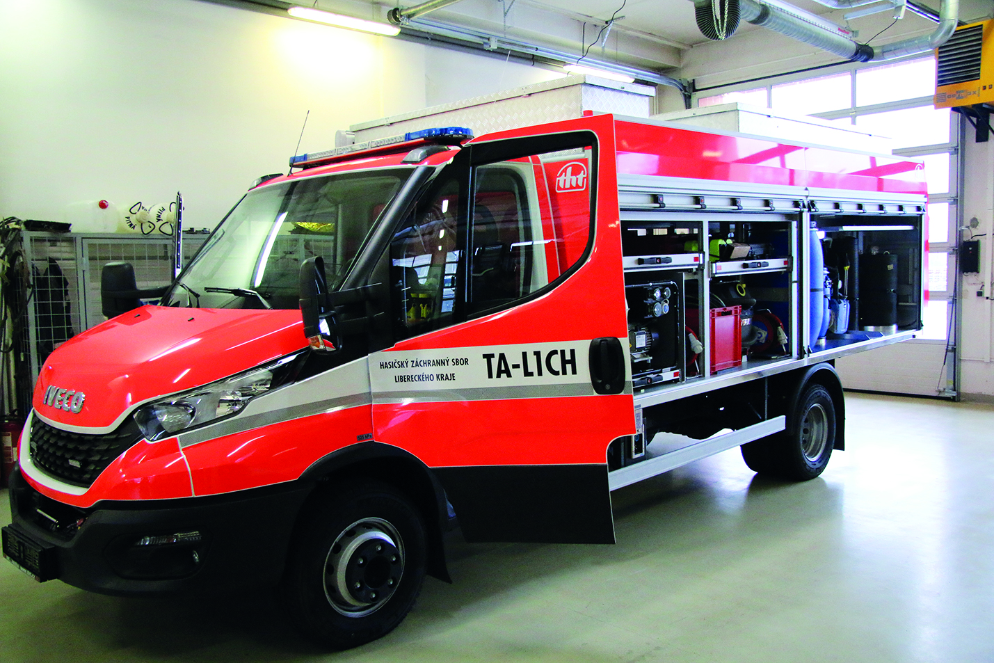 Jablonečtí hasiči slavnostně uvedli do provozu nový technický automobil v chemickém provedení pro zdolávání mimořádných událostí s výskytem nebezpečných látek TA­ L1CH (barevné provedení RAL 3024).