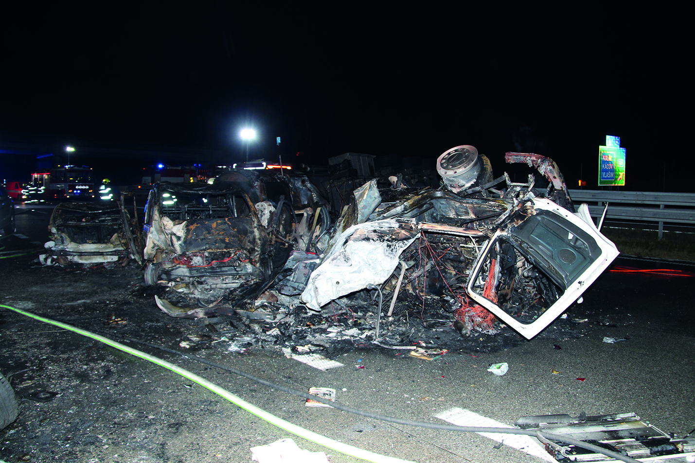 - vzhledem k velké intenzitě požáru nebylo možné provést průzkum v osobních vozidlech, nedalo se tak v prvopočátku zjistit, kolik osob ve vozidlech zůstalo,
