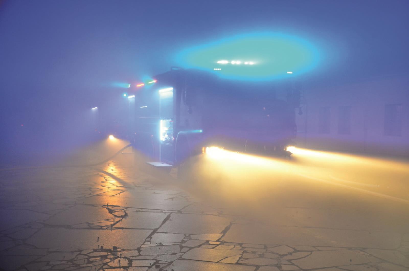 Kromě světel pro osvětlení okolí nástavby je vozidlo vybaveno rovněž přídavnými požárními světlomety směřovanými do obou stran a dozadu, přičemž světelný tok každého z nich je 5 000 lm. V přední části střechy automobilu je navíc umístěn otočný pátrací světlomet se světelným tokem 3 000 lm ovládaný z kabiny a další světlomet je součástí lafetové proudnice.
