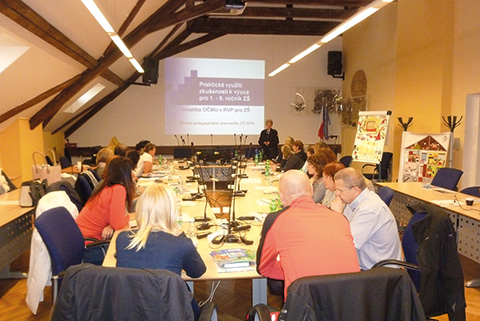 Vzdělávací program byl rozdělen na dvě části. V první části lektorky HZS Libereckého kraje por. Mgr. Iva Michalíčková a kpt. Mgr. Michaela Stará připomněly začlenění problematiky OČMU do Rámcového vzdělávacího programu pro základní vzdělávání (dále jen „RVP pro ZV“) a ukázaly dostupné materiály, příručky a další pomůcky jak v elektronické podobě na webových stránkách MV‑generálního ředitelství HZS ČR, tak v tištěné verzi. Všichni účastníci dostali pro podporu výuky OČMU na 2. stupni brožury „Vaše cesty k bezpečí aneb chytré blondýnky radí…“, „Víš, odkud voláš o pomoc na tísňovou linku 112?“ a pracovní sešit pro žáky 1. stupně. V České Lípě se více času věnovalo seznámení s webovými stránkami, interaktivními multimediálními kurzy a pomůckami Asociace Záchranný kruh, protože nikdo z přítomných učitelů tento bezpečnostní informační portál při výuce zatím nevyužíval.