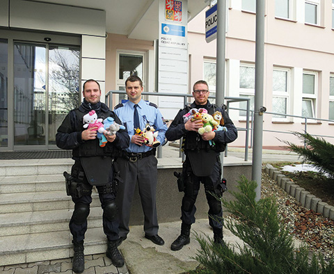 Vzhledem k nečekanému přívalu hraček se psycholožka kpt. Mgr. Soňa Pančochová rozhodla oslovit také své kolegy z intervenčních týmů Policie ČR Zlínského kraje, kteří vykonávají podobnou činnost nejen při řešení první psychologické pomoci u zásahů, ale také např. při vlastním vzdělávání v této oblasti a preventivně výchovné činnosti zaměřené na dětskou i dospělou populaci. Na začátku letošního roku tak mohly obě organizátorky sbírky předat tři velké krabice malých plyšáků psycholožkám Policie ČR, které je potom rozvezly svým kolegům policistům na jejich služebny v kraji.