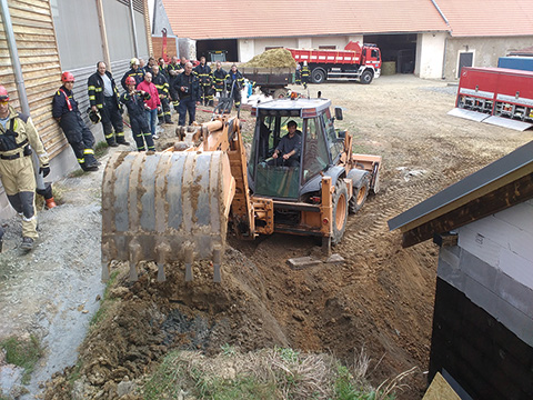 Po soustředění jednotek PO byla technika ustavena do prostorů vhodných pro zásah a byl stanoven postup pro provádění vyprošťovacích prací. Na místě se nacházel majitelem povolaný zemní stroj se zadním podkopem z nedaleké farmy, který se velitel USAR týmu rozhodl použít pro odbagrování části svahu a zlepšení přístupu k zavaleným.