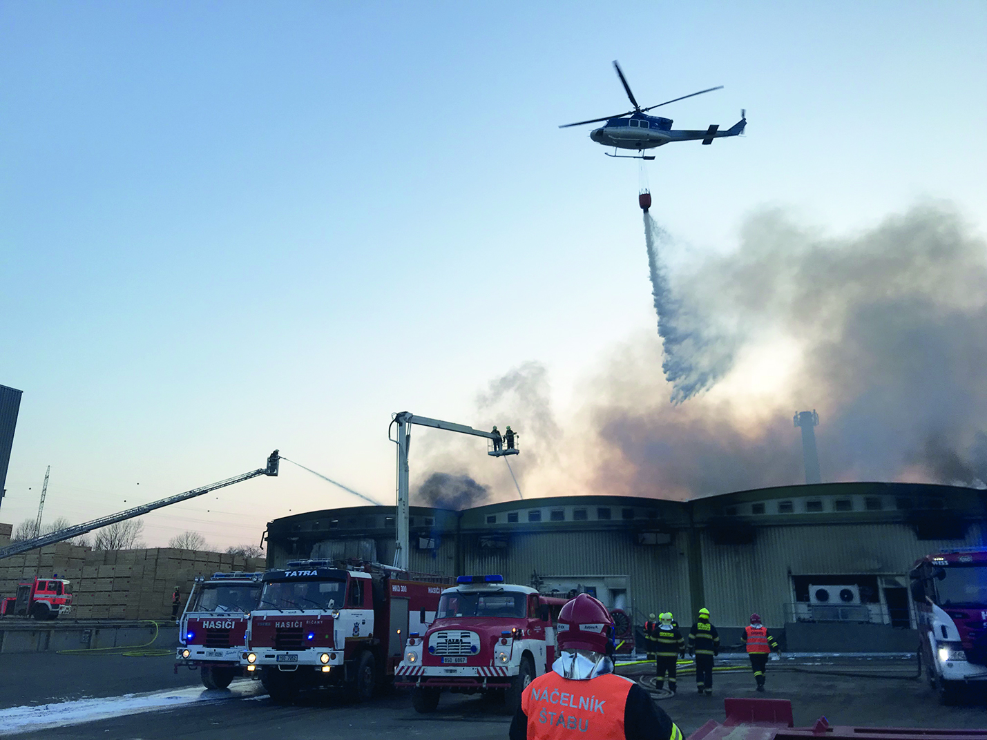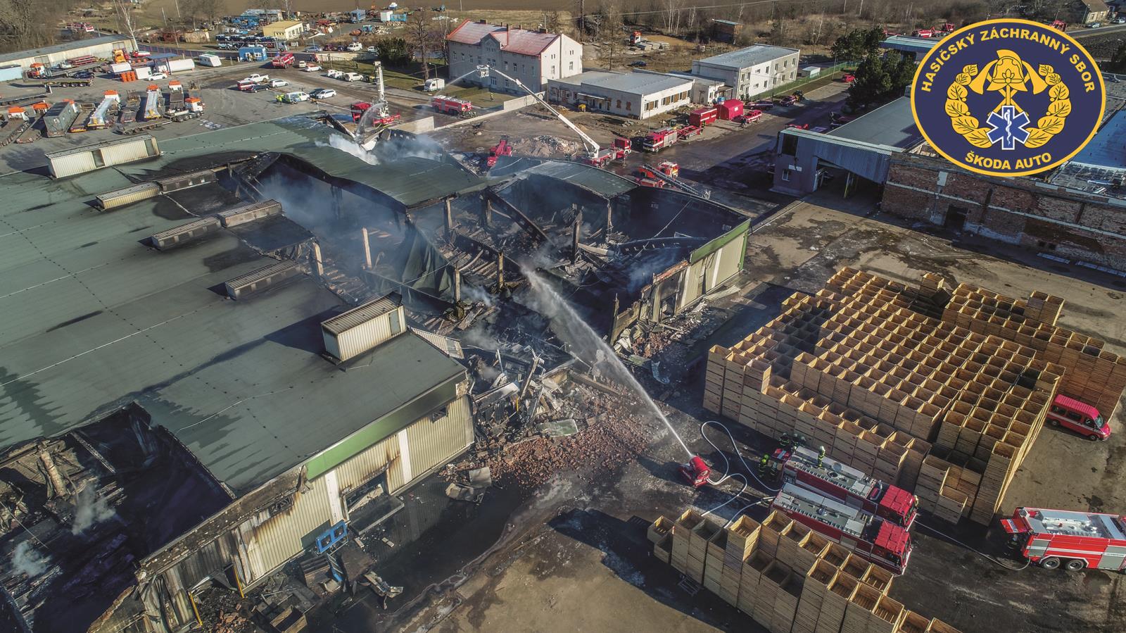 Boleslav. Jeho ředitel na místo zásahu povolal pracovníky specializované firmy, která škodováckým hasičům drony dodávala. Během druhého dne hasebních prací byly nasazeny dva drony, jejichž obraz byl přenášen pro potřeby řízení a dokumentace zásahu. Jeden dron byl osazen kamerou s přenosem standardního obrazu, druhý dron posléze termokamerou. Díky reálnému obrazu měl VZ přehled o nasazení a činnosti po celém obvodu skladovací haly, tedy po celém území hasebních prací. Podle potřeby byl vždy dron přesměrován na detailní pohled probíhajících prací. Za využití dronu s termokamerou byly řízeny proudy z výškové techniky a byly tak účinně směrovány do prostoru s nejvyšší teplotou, tedy do místa probíhajícího hoření. Zásah se tak výrazně zefektivnil. Pro ÚO Mladá Boleslav to byla první významnější zkušenost s nasazením bezpilotních prostředků a všem zúčastněným bylo zřejmé, že se v budoucnosti budou drony stále častěji používat.