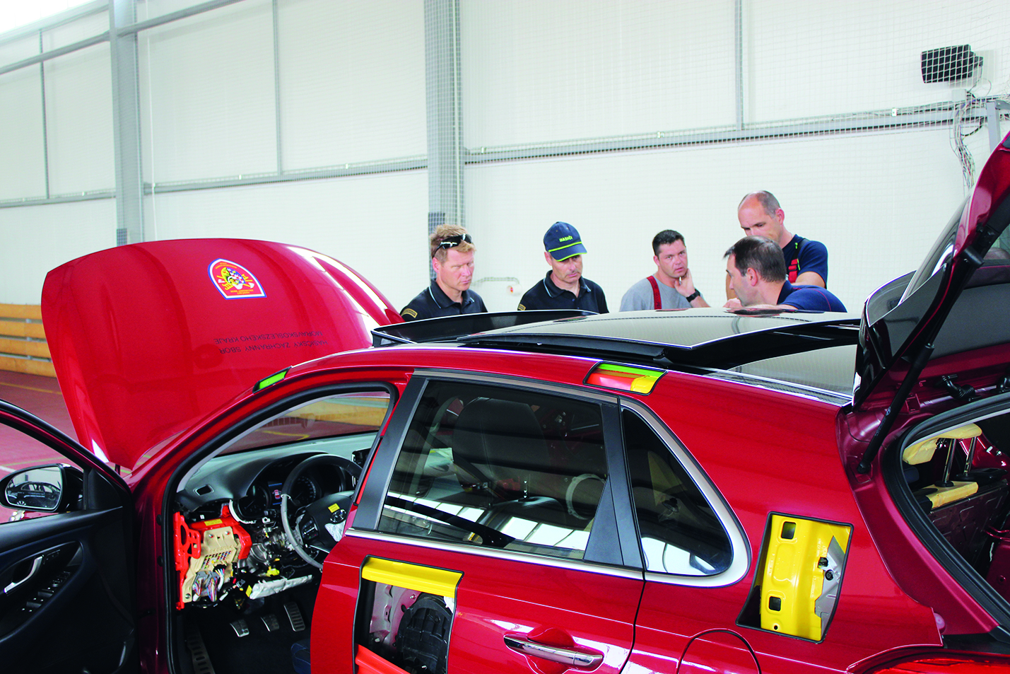 Elektromobilita – stanoviště měl na starost nprap. Ing. Jan Pluhař společně se zástupci firem, které zapůjčily vozy. Stanoviště navazovalo na teoretickou přednášku, která proběhla první den v dopoledních hodinách. Ke zhlédnutí byla čtyři elektrifikovaná vozidla různých výrobců a koncepcí. Plugin Hybridy byly v provedení VW Passat GTE a Mercedes Benz třídy E. Zmíněné vozy vycházejí z konvenčních automobilů a od tohoto se odvíjí umístění baterie a další navazující systémy. Vozidla na čistě elektrický pohon byla na stanovišti zastoupena Teslou Model S a Audi E Tron. Účastníci se seznámili u všech předváděných automobilů s jejich konstrukcí a základními postupy pro případ zásahu ať už při požáru nebo dopravní nehodě. Dále mohli porovnávat různé přístupy k bezpečnosti elektrifikovaných vozidel jednotlivých automobilek. Na stanovišti se rovněž hovořilo o Listech pro záchranáře, Bezpečnostních listech, čtení QR kódů, o postupech uvedení do beznapěťového stavu u vozidel dalších výrobců (Toyota, Lexus, Honda apod.) odpojovacím konektorem atd. V neposlední řadě byly představeny varianty nabíjení a způsoby odpojení vozidel od veřejných nabíjecích stanic a domácích nabíječek pro případ nutnosti manipulace s vozidlem.