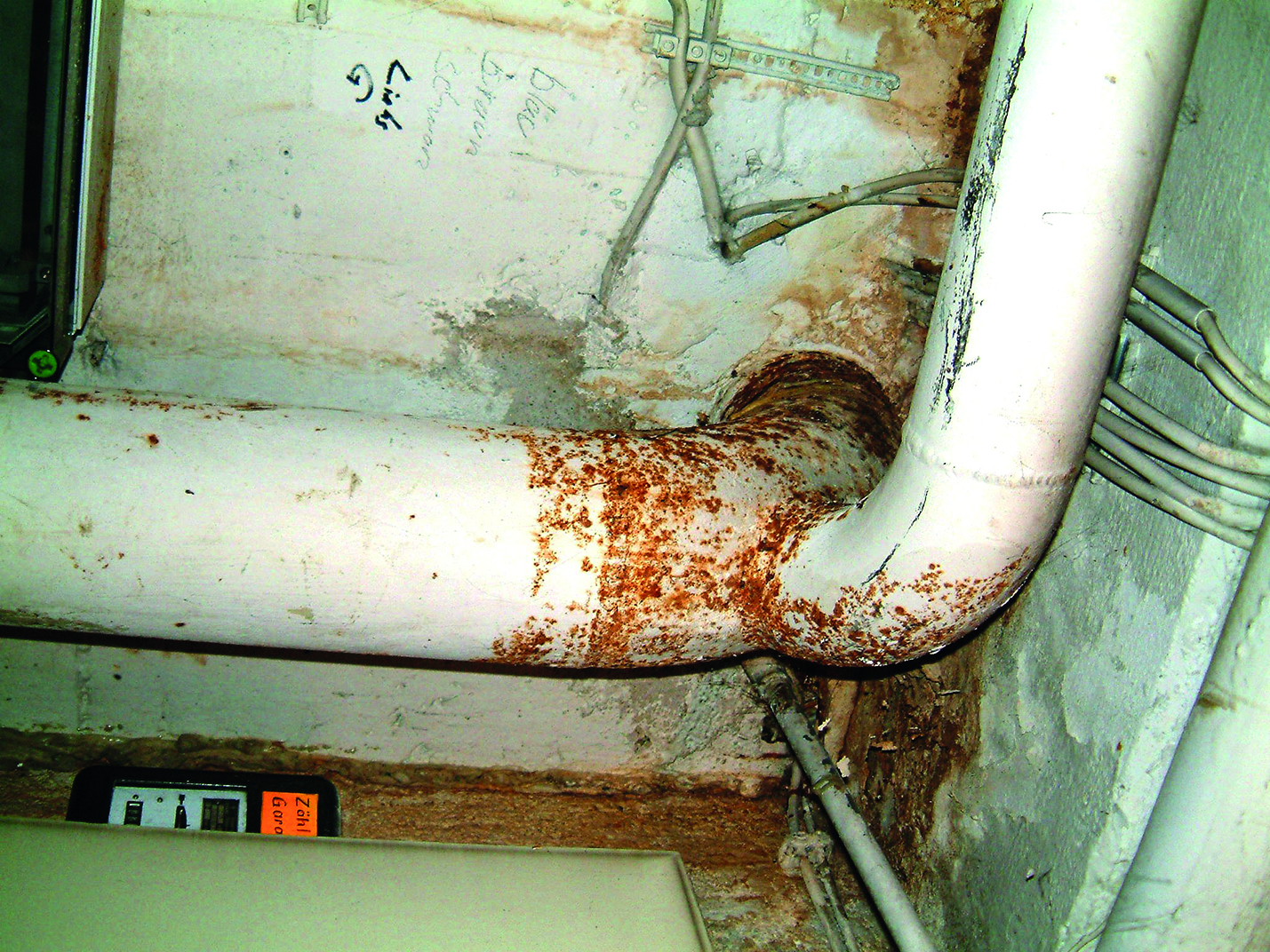 Obr. 7 Příklad pozinkovaného potrubí se začínající korozí v místě drážky pro mechanickou spojku