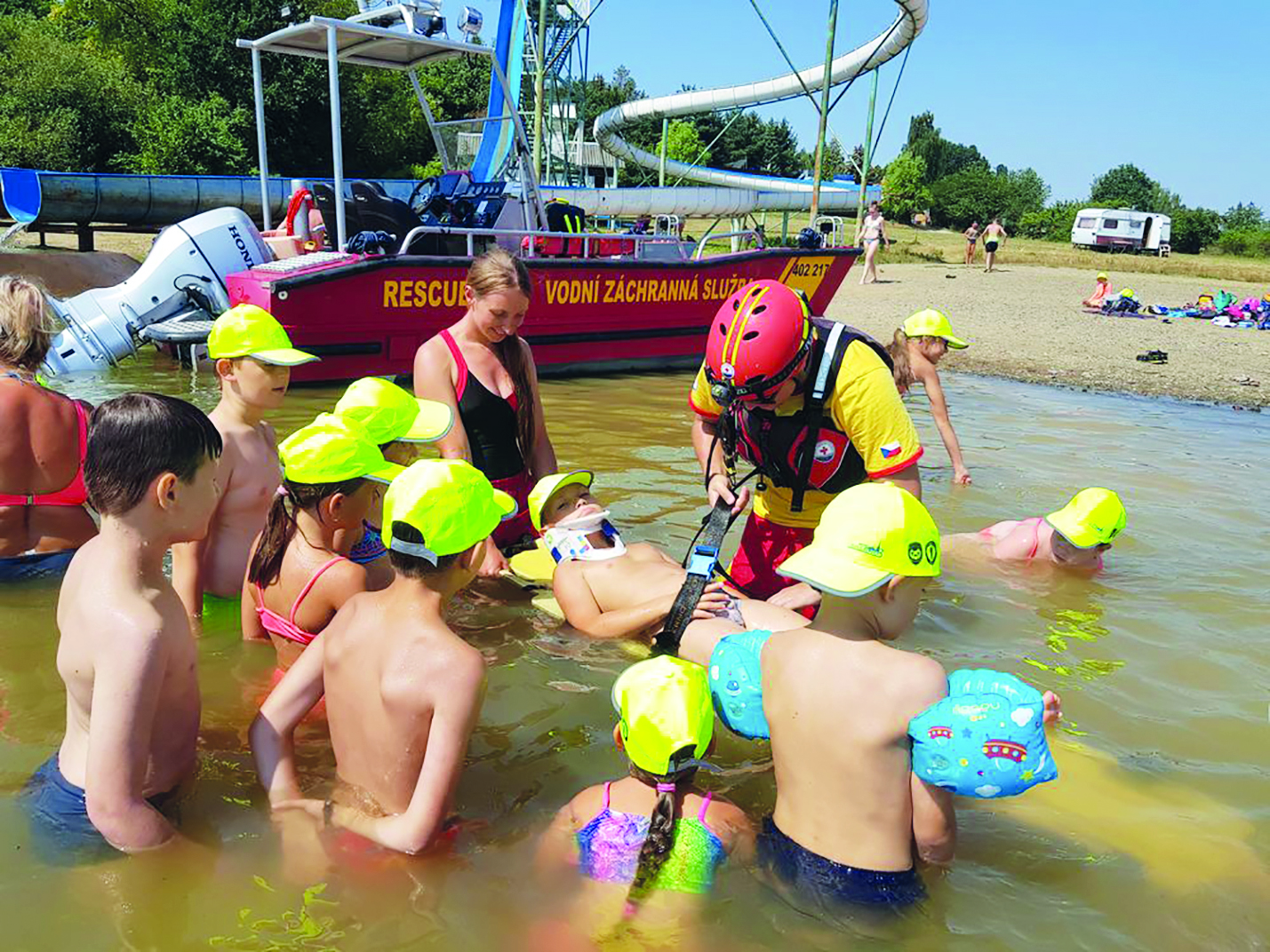 Při celodenním výletu na vodní nádrž Hracholusky se děti nejen svezly parníkem, ale také zhlédly ukázku Vodní záchranné služby Plzeň.