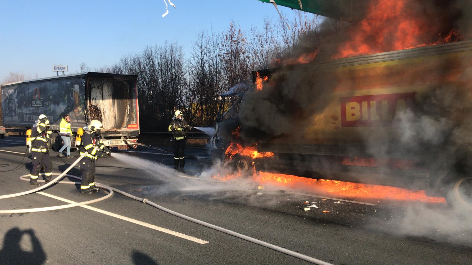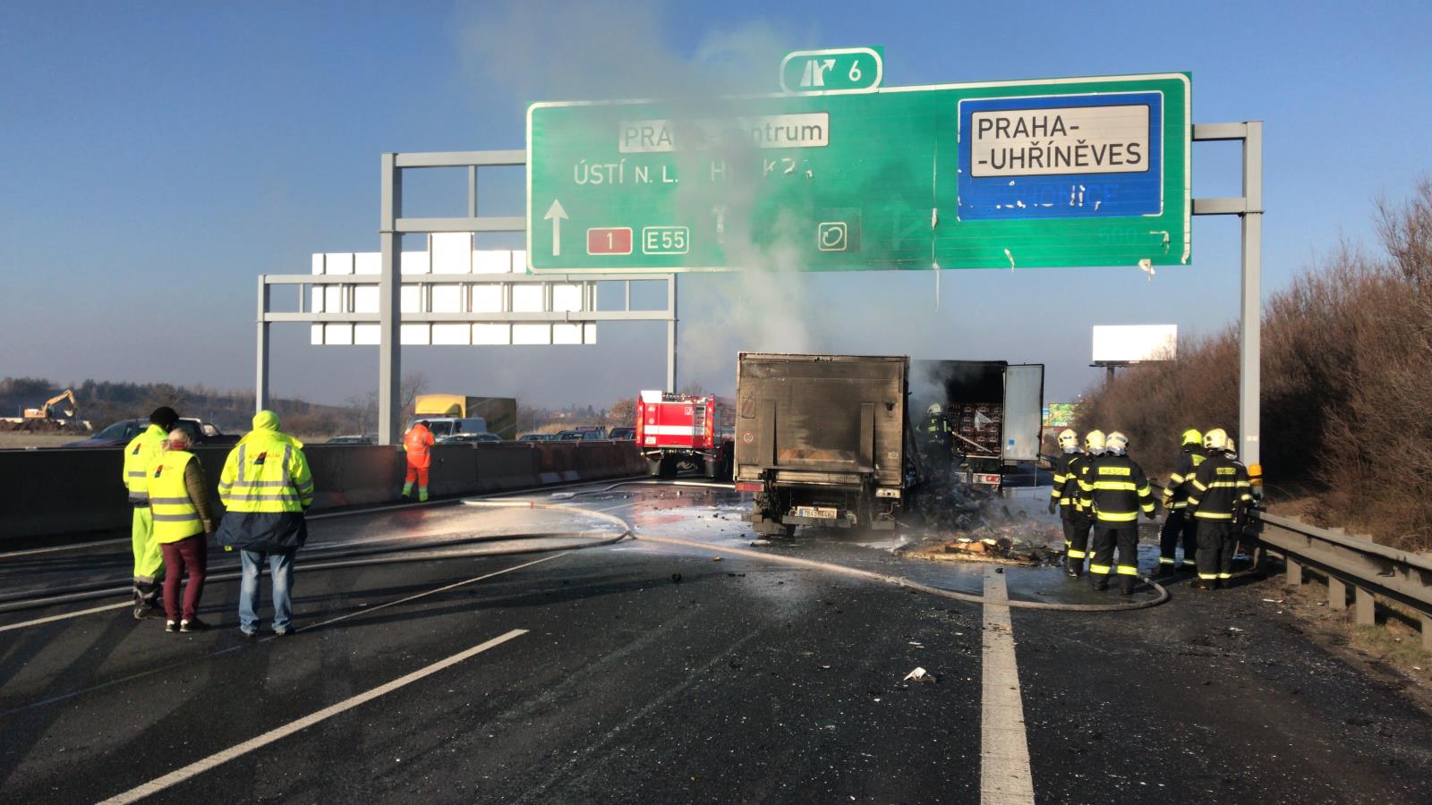 Dne 21. ledna letošního roku byl v 9.56 hodin na KOPIS HZS Středočeského kraje ohlášen požár nákladního automobilu na dálnici D1 na osmém kilometru před Prahou s tím, že oznamovatel neví, co nákladní automobil veze a zda je někdo zraněný. Podle dalších informací oznamovatel na kamerách, které obsluhuje Středisko správy a údržby dálnice Mirošovice (SSÚD), vidí stoupající hustý dým.