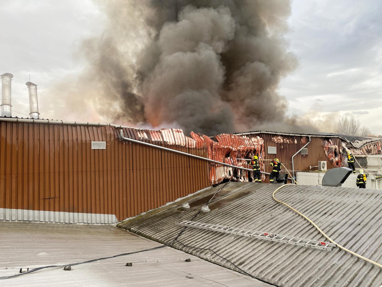 V době příjezdu první jednotky PO byla skladová hala zasažena požárem již ze dvou třetin své velikosti a plameny šlehající ze střechy s hustě se valícím černým kouřem dávaly tušit, že jde o požár značného rozsahu, což se následně potvrdilo průzkumem místa ze střechy sousedících budov. Průzkum prokázal zřícení střešní konstrukce haly a poškození obvodového opláštění, z čehož vyplynulo vyhlášení 2. stupně požárního poplachu a rozhodnutí velitele zásahu (VZ) o způsobu nasazení sil a prostředků (SaP), které se primárně zaměřily na zásah vnější zásahovou cestou ze střech okolních provozů a výškové techniky, a nasazením jednoho útočného proudu vnitřní zásahovou cestou a jedné přenosné lafetové proudnice proti směru šíření požáru v místě mezi chladicím hospodářstvím a skladovou částí haly.