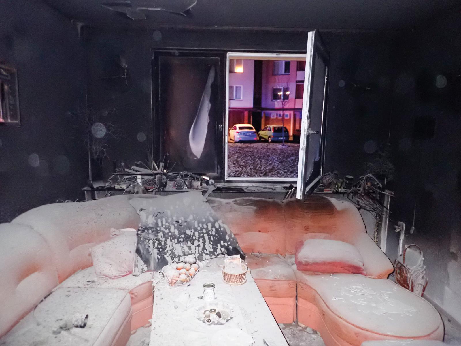 Na místo zásahu se postupně sjeli hasiči ze stanice Vsetín a jednotky sborů dobrovolných hasičů ze Vsetína a Jablůnky. Již při jízdě k místu události viděli černý kouř, stoupající skrz porušené okno. V době jejich příjezdu ostatní obyvatelé domu odešli ven do bezpečí. Hasiči po násilném vstupu do bytu pomocí dvou útočných proudů provedli lokalizaci a následně likvidaci požáru. Na požářiště se dostavil vyšetřovatel hasičů, který provedl ohledání zasažené bytové jednotky i jejího okolí. Z vnější strany budovy bylo viditelné poškození okenního uzávěru ve východní obvodové konstrukci a znečištění fasády domu zplodinami hoření. Při ohledání bytu bylo patrné, že k požáru došlo uvnitř bytu, a to konkrétně v obývacím pokoji v prostoru okna a před ním. V těchto místech vyšetřovatel vymezil požární ohnisko. Pod oknem se nacházela sedací souprava. Ta měla nejvíce poškozené opěradlo, kdy došlo k celkovému odhoření polstrování. Horní hrana opěradla vykazovala silnou termickou degradaci. Největší poškození bylo v místech, které přiléhaly k parapetu okna. Plastové okno bylo silně poškozeno požárem a nemělo skleněnou výplň. Šetřením bylo prokázáno, že v době požáru bylo okno zavřené. Plastová parapetní deska byla požárem zasažena nejvíce, povrch byl silně degradován působením plamenného hoření. Nejvíce byl parapet poškozený pod levým křídlem okna.