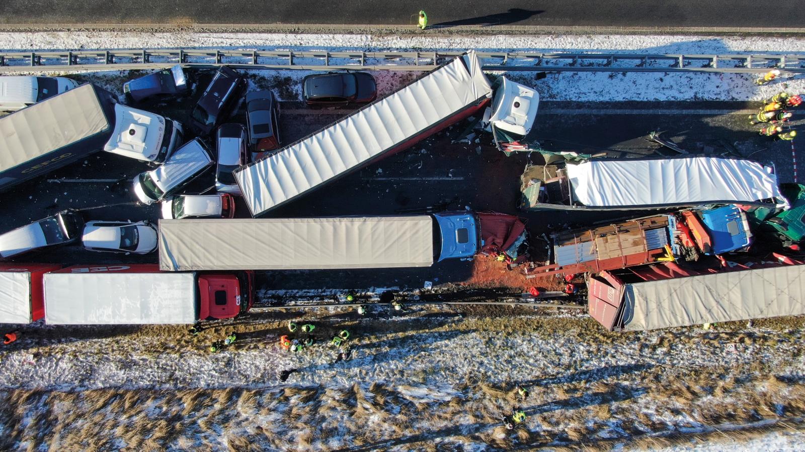 17.23 hodin – na místě byly ještě čtyři osobní vozidla a devět nákladních automobilů, které zbývalo odtáhnout.