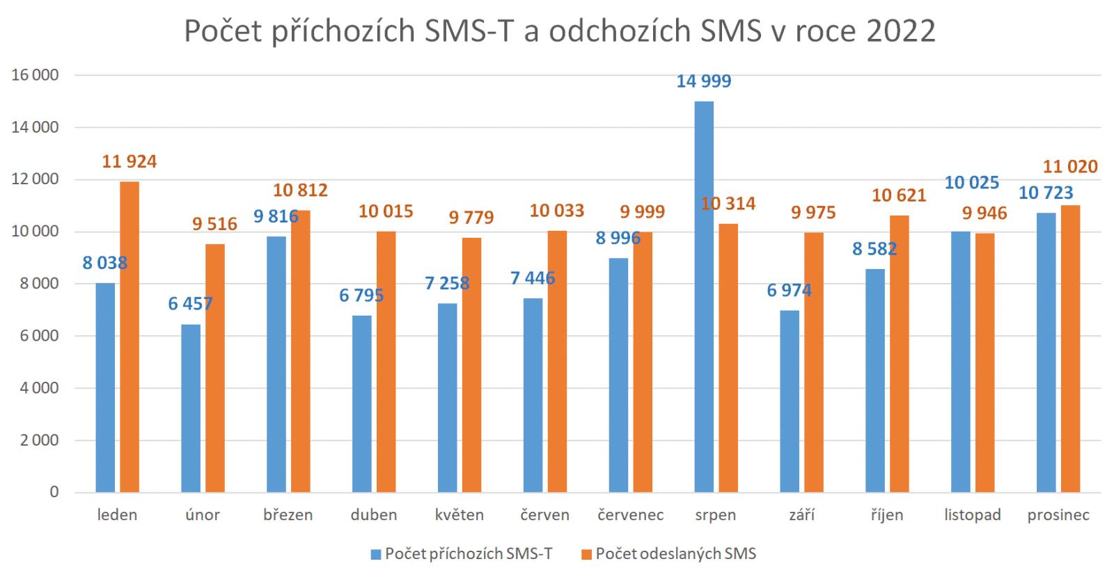 V období od 1. ledna 2022 do 1. ledna 2023 bylo na tísňových linkách 112 a 150 přijato 106 109 zpráv SMS-T. Na základě těchto přijatých zpráv bylo založeno celkem 517 mimořádných událostí, které byly řešeny složkami integrovaného záchranného systému.