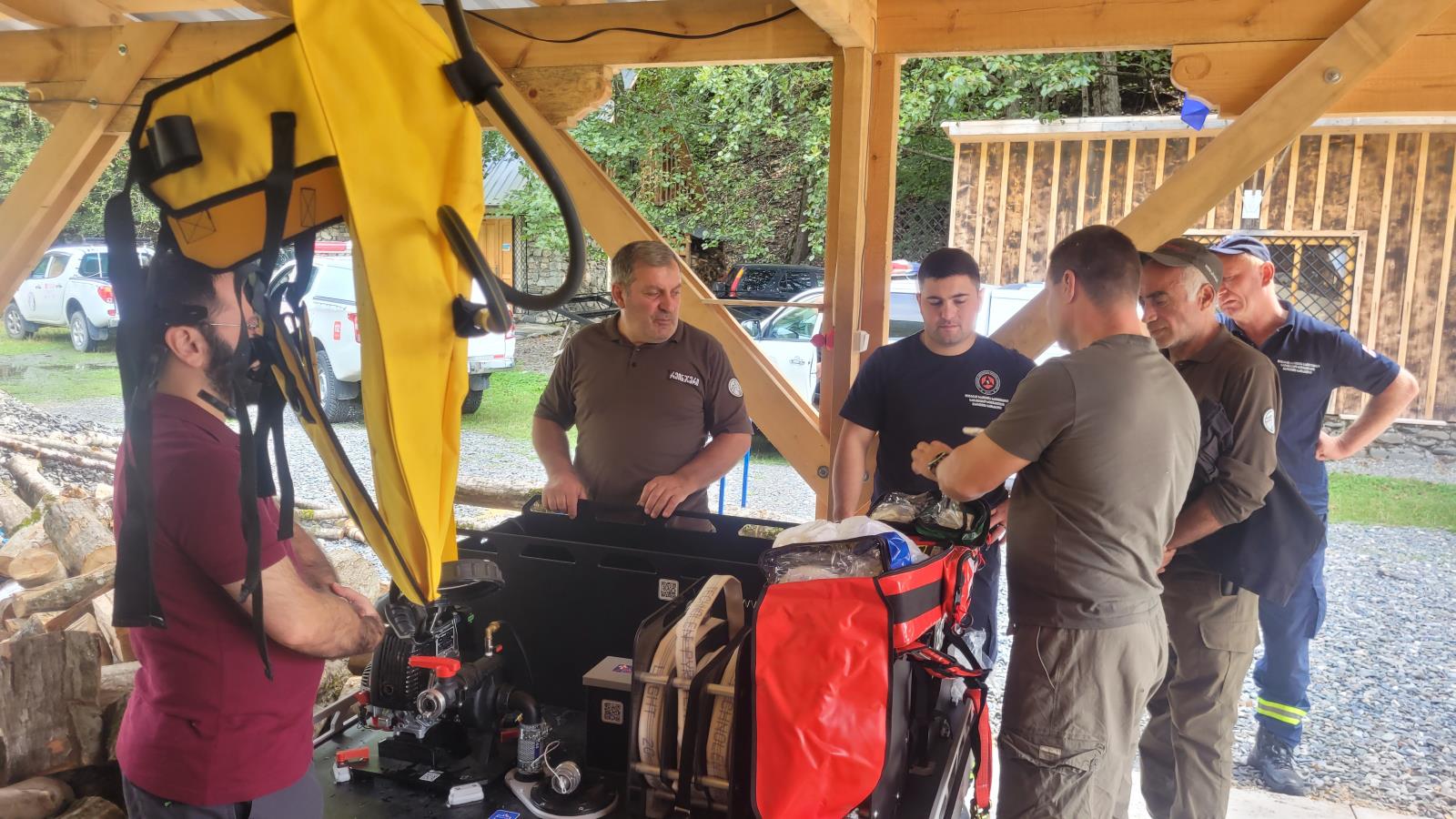 Druhou částí projektu byl nákup vybavení a zaškolení všech zúčastněných. Do dodávek materiálu se zapojili i výrobci z ČR. Pořízení materiálu zabezpečil a financoval UNDP s podporou MZV a HZS ČR poskytl lektory pro školení. Na základě požadavku UNDP byl připraven kurz kombinující problematiku požárů v přírodním prostředí a první pomoc. V září 2024 odjelo do Gruzie pět hasičů z HZS Olomouckého a Moravskoslezského kraje. Kurz byl rozdělen na dvě části. První část trvala čtyři dny a konala se ve městě Dusheti. Druhá část jen dva dny a probíhala v pohraniční vesnici Shatili. Během projektu byly všem zapojeným organizacím dodány prostředky pro hašení přírodních požárů a první pomoc. Stanice v Dusheti získala speciální terénní vozidlo SxS, hasicí modul, záchranářský modul pro převoz zachraňovaných, ruční nářadí pro hašení a prostředky první pomoci. Chráněná oblast a národní park získaly hasicí modul na pickup, ruční nářadí pro hašení a prostředky první pomoci. Obě organizace disponují vozidly Mitsubishi L200 pickup. Zajímavé je, že vozidla chráněné oblasti Aragvi byla pořizována v předchozích projektech podpořených ČR, a podařilo se tedy navázat na práci českých lesníků. Velice přínosnou byla spolupráce se zaměstnanci Ústavu pro hospodářskou úpravu lesů, kteří v oblasti Dusheti pravidelně působí v rámci svých projektů.