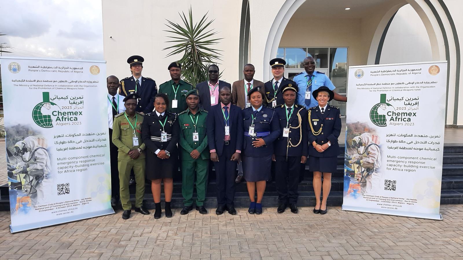 Multikomponentní cvičení CHEMEX Africa bylo prvním rozsáhlým komplexním cvičením OPCW pro řešení chemických událostí pro celý africký kontinent (3). Jeho cílem bylo zvýšit chemickou bezpečnost Afriky a propojit jednotlivé regiony kontinentu společným cvičením. Během dvoutýdenní akce instruktoři z východní Afriky a Alžírska školili záchranáře dalších států napříč Afrikou. Cvičení, pořádaného od 22. září do 4. října 2023 v hlavním městě Alžírska, se zúčastnilo 80 záchranářů z 32 afrických států, kteří trénovali detekci a identifikaci neznámé chemické látky, odběr vzorků, správné použití ochranných obleků či dekontaminaci. Bylo jedinečné svým pojetím kombinujícím komplexní teoretický rámec s praktickými zkušenostmi, včetně závěrečné simulace zásahu na mimořádnou chemickou událost. Akce byla rozdělena na dvě týdenní části, kdy první obsahovala výcvik účastníků a druhá se soustředila na nácvik ukázky zásahu při úniku neznámé vysoce toxické látky, což sloužilo jako hlavní závěrečná demonstrace schopností afrických týmů.