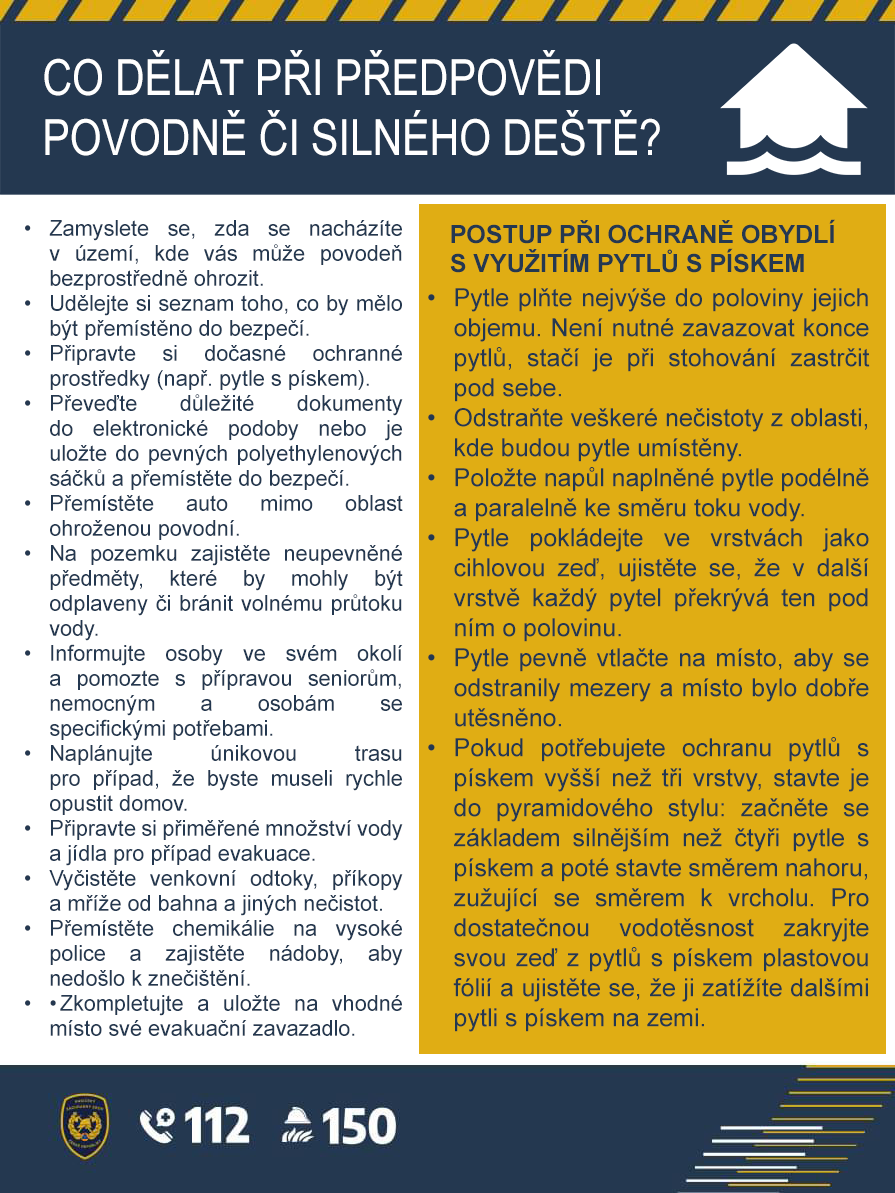 Výstraha Českého hydrometeorologického ústavu před výskytem extrémních srážek, silného větru a možných povodní se v průběhu dnešního dne zhoršila. Přinášíme vám proto rady a doporučení, jak všechny uvedené jevy zvládnout s co nejmenšími škodami: