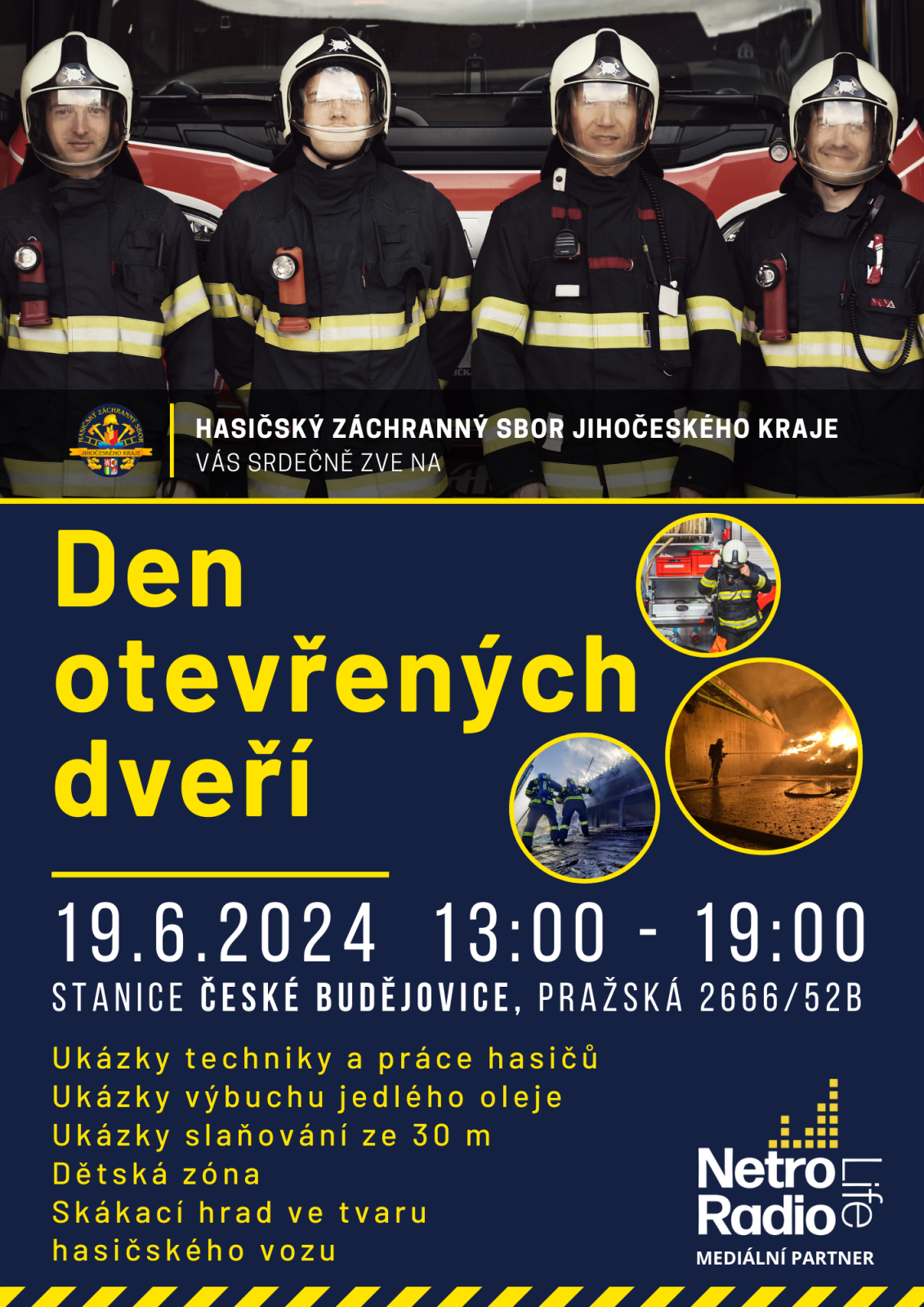 Ve středu 19. června 2024 otevřeme pro širokou veřejnost brány dvou jihočeských stanic, a to v Českých Budějovicích a v Jindřichově Hradci. V čase od 13 do 19 hodin v Českých Budějovicích a od 9 do 16 hodin v Jindřichově Hradci vám ukážeme vše, co českobudějovická a jindřichohradecká stanice nabízejí.
