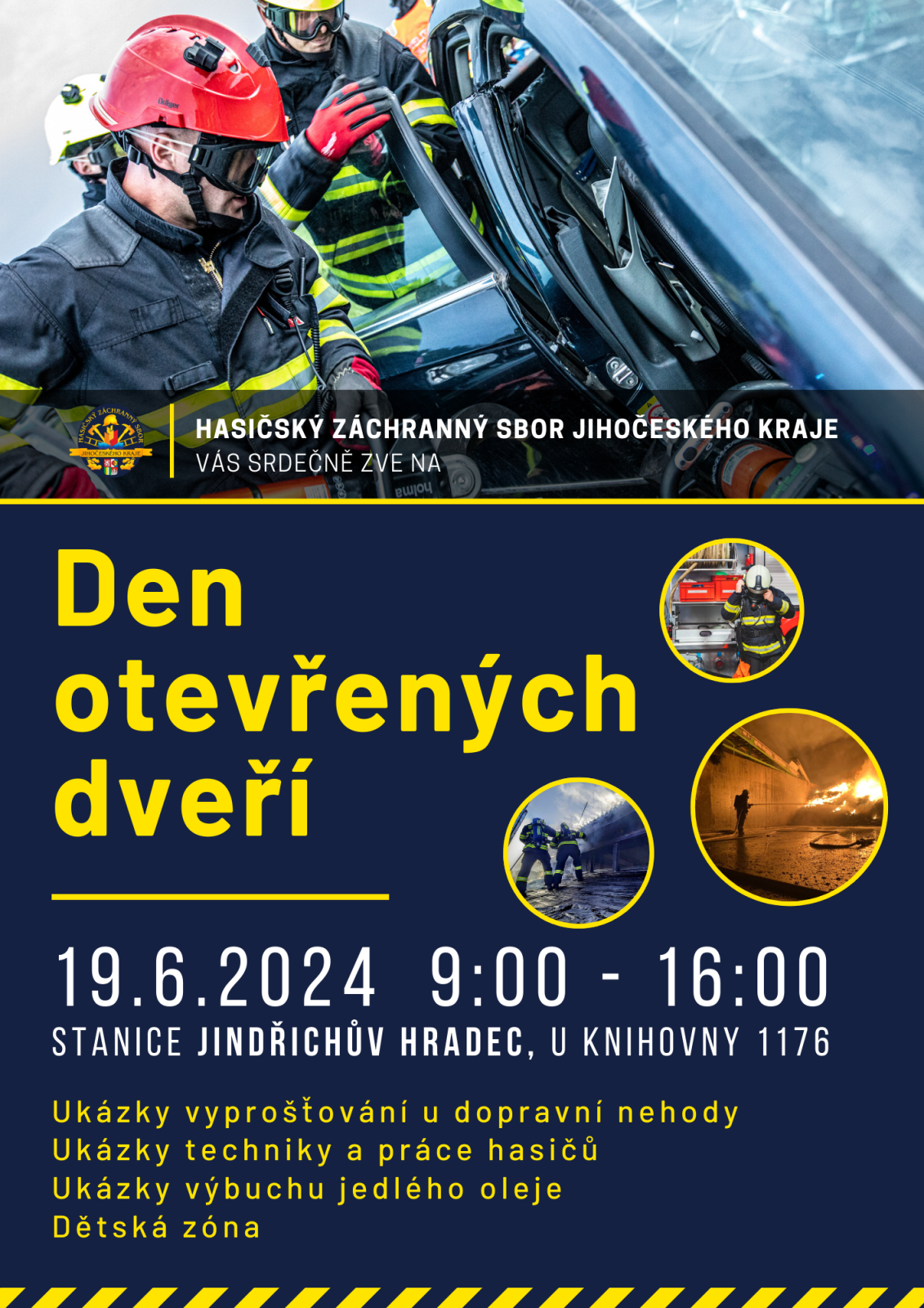Jindřichohradecká stanice je největší stanicí na okrese, disponuje technikou základní i speciální. Všechna vozidla budou připravena na vaši návštěvu. Zároveň si budete moci prohlédnout vybavení nejen techniky, ale i vybavení hasičů, to znamená dýchací přístroje, protichemické obleky, ukážeme vám, jak řešíme komunikaci a radioprovoz.