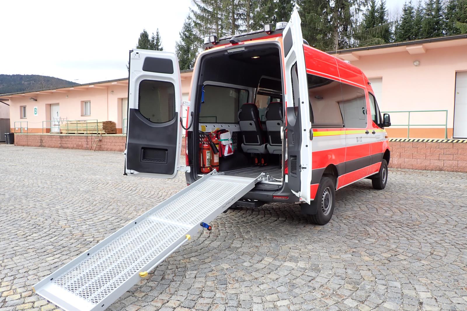 Nový dopravní automobil pro převoz a evakuaci imobilních osob doplnil letos vozový park stanice Prachatice. Jedná se o Mercedes Benz Sprinter 4x4 poháněný dvoulitrovým přeplňovaným vznětovým čtyřválcem s výkonem 140 kW, spojeným s automatickou převodovkou. Za zadními dvoukřídlými vraty je umístěna sklopná nájezdová plošina s prostorem pro umístění a bezpečné uchycení až 3 invalidních vozíků. Vnitřní prostor je velmi variabilní s jednotlivými sedadly posuvnými v kolejnicích a rozložením 7+1. Karoserie vozidla je v barevném provedení RAL 3024, tedy zářivé červené barvy pro zvýšení viditelnosti při provozu na pozemních komunikacích.