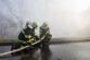 Následovala ukázka vstupu do uzavřených prostor, tedy zkouška teploty dveří, jejich ochlazení a vytvoření vodní mlhy pro reakci se zplodinami i ochlazení prostoru za dveřmi.