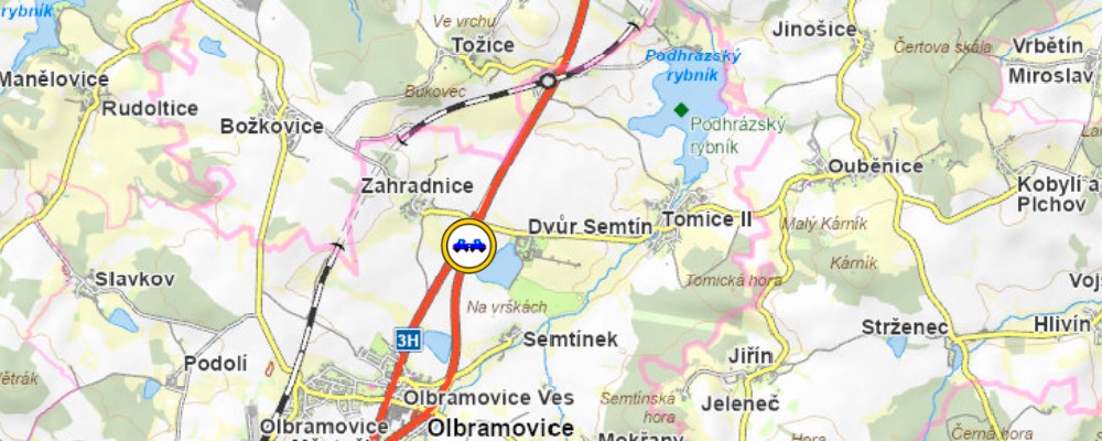 V pondělí 22. května v 9 hodin a 15 minut přijalo Krajské operační a informační středisko Hasičského záchranného sboru Středočeského kraje informaci o nákladním automobilu, který na novém obchvatu Olbramovic v blízkosti rybníka Slavnič na Benešovsku sjel ze silnice č. 3 a převrátil se z mírného svahu několik metrů pod komunikaci.