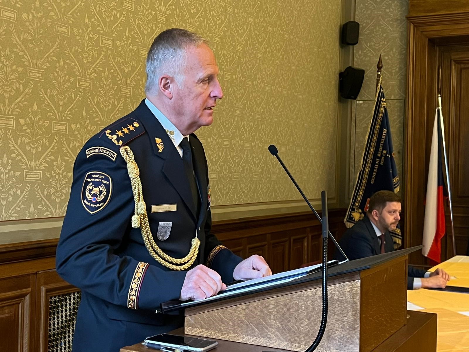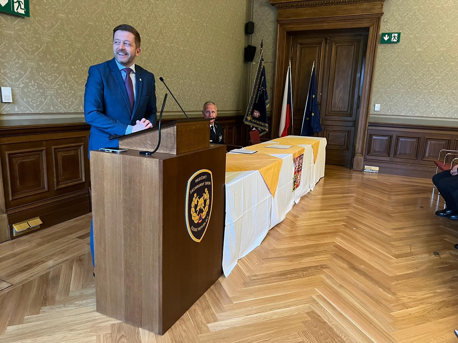 Ministr vnitra Vít Rakušan při svém projevu zmínil zásluhy hasičů v době pandemie i válečné krize na Ukrajině. "Váhali jsme všichni. Jediní, kdo nesměl zaváhat, jste byli vy. Obrátili jsme se na vás a byli jste to vy, kdo byl spoluzodpovědný za řízení neznámých krizí. Vy jste se zasloužili za to, že bezpečnost není prázdným pojmem."