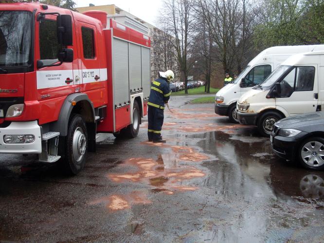 Hasiči likvidovali následky nehody i únik nafty na parkovišti