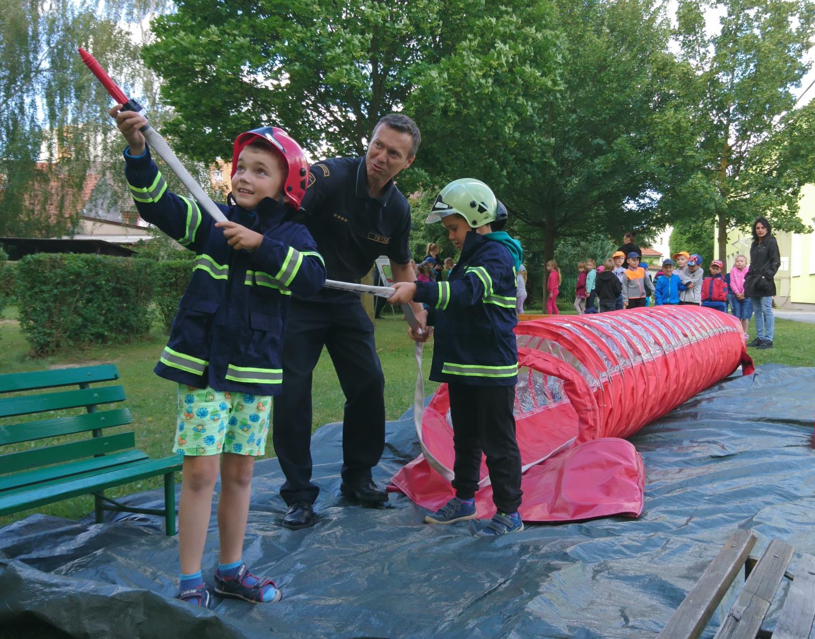 Přibližně stovka dětí 3. mateřské školky v Jeronýmově ulici v Třeboni se v pátek 22. června zapojila do výchovného programu, který pro děti - stejně tak jako každý rok - připravili jihočeští hasiči. Akci pořádali hasiči územního odboru Jindřichův Hradec ve spolupráci s krajským ředitelstvím.