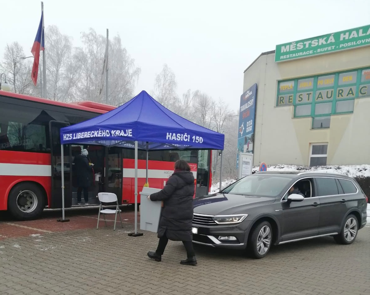 Příslušníci HZS Libereckého kraje dnes 25. ledna 2023 v průběhu celého dne, stejně jako před dvěma týdny, spolupracují na hladkém průběhu prezidentských voleb pro občany, voliče s onemocněním Covid-19.