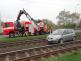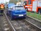 Hasiči vyprošťovali dvě auta v tramvajovém kolejišti v Ostravě