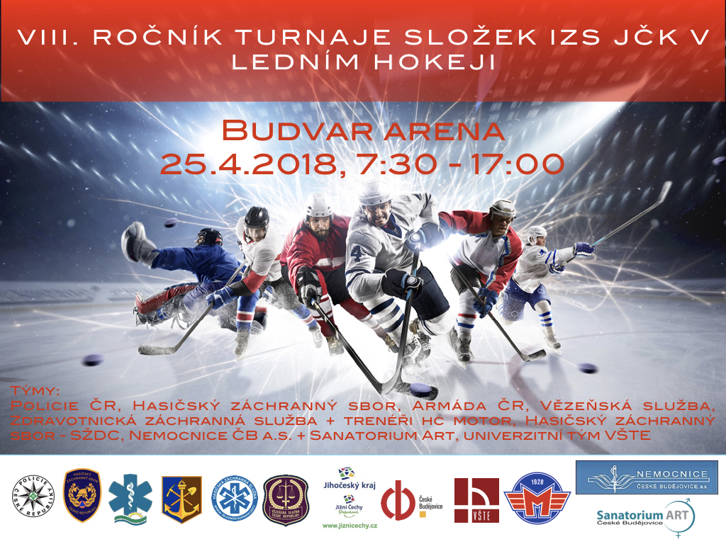 Českobudějovická Budvar Aréna bude po celý den hostit již osmý ročník „Hokejového turnaje složek integrovaného záchranného systému“. Turnaj bude zahájen v 7:30, slavnostní vyhlášení vítězů se předpokládá v 18 hodin za přítomnosti primátora statutárního města České Budějovice a ředitelů jednotlivých zúčastněných složek.