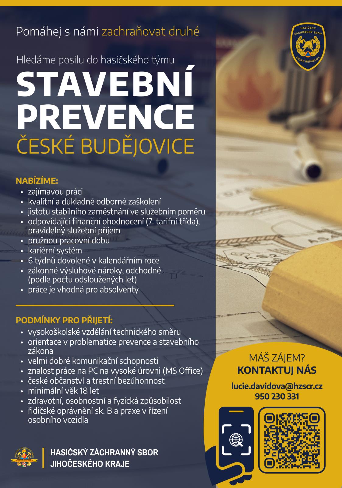 V Českých Budějovicích hledáme kolegu na stavební prevenci!!!