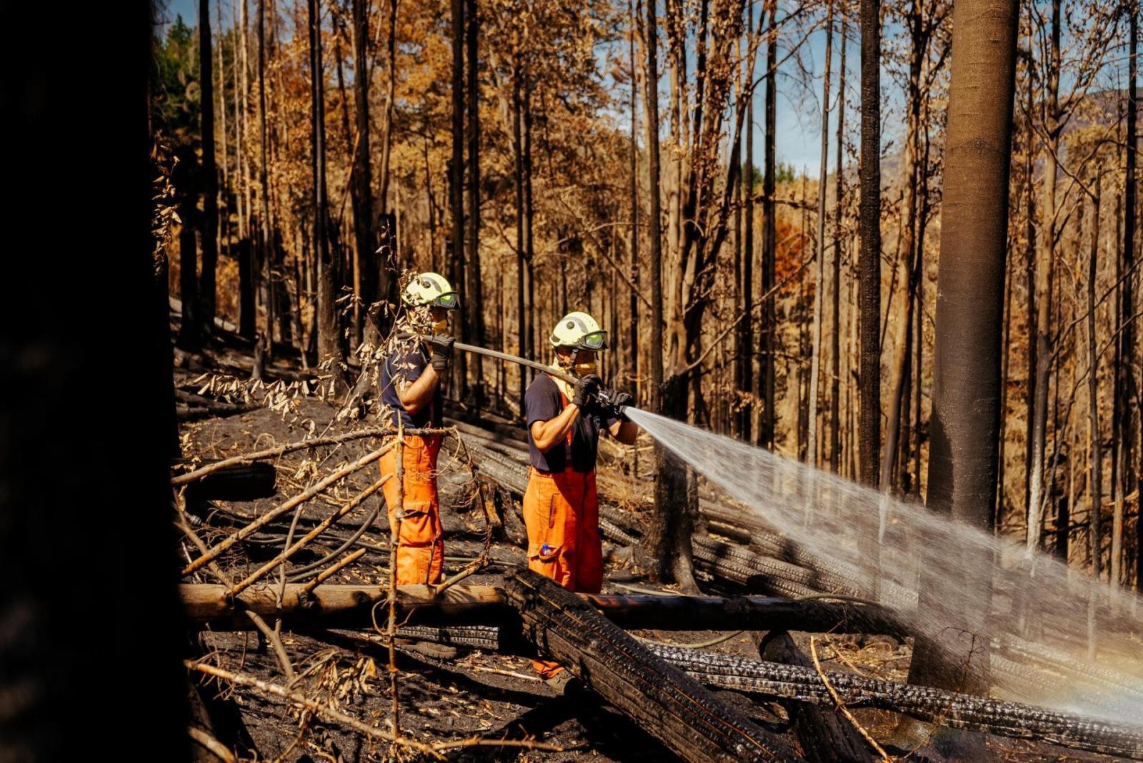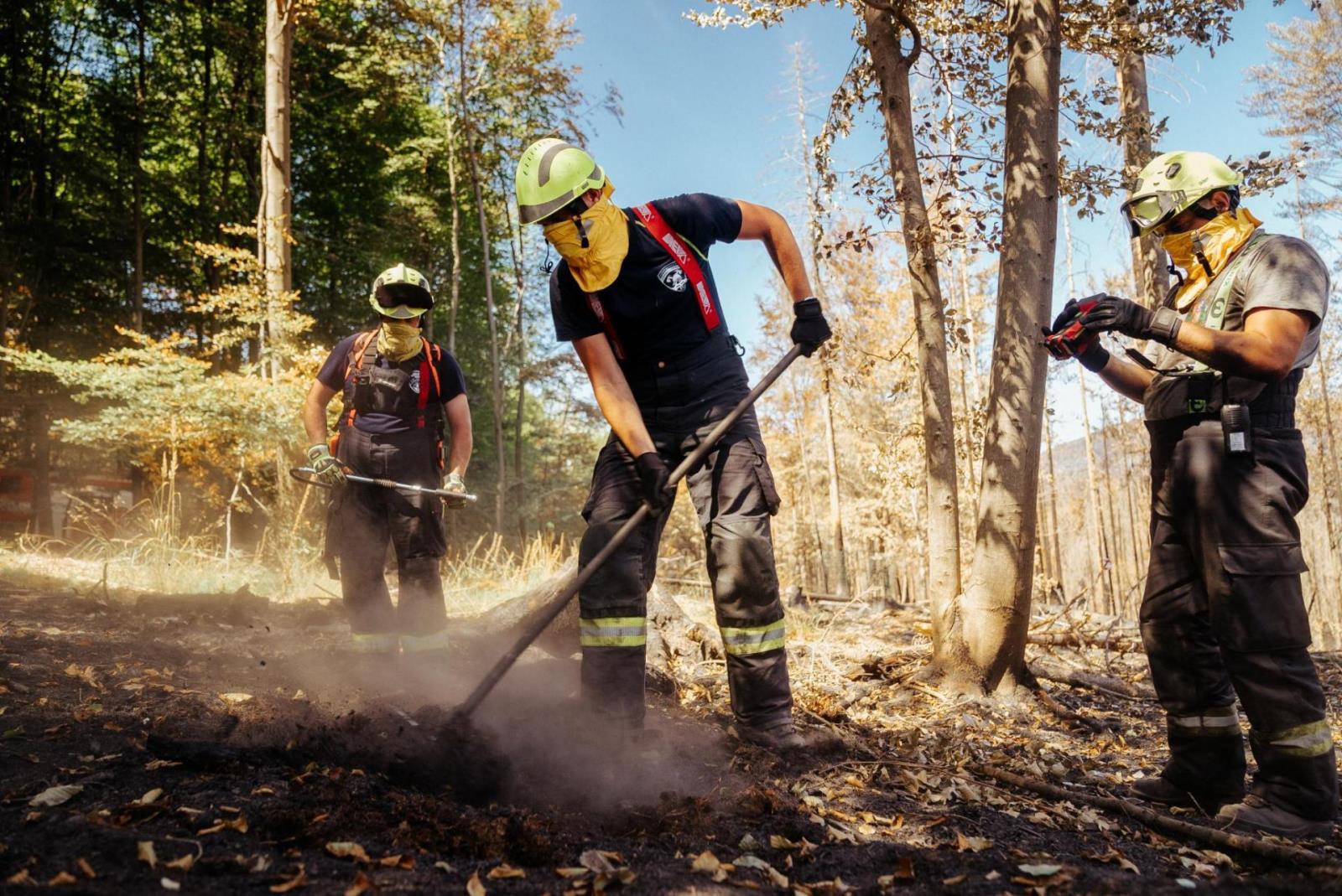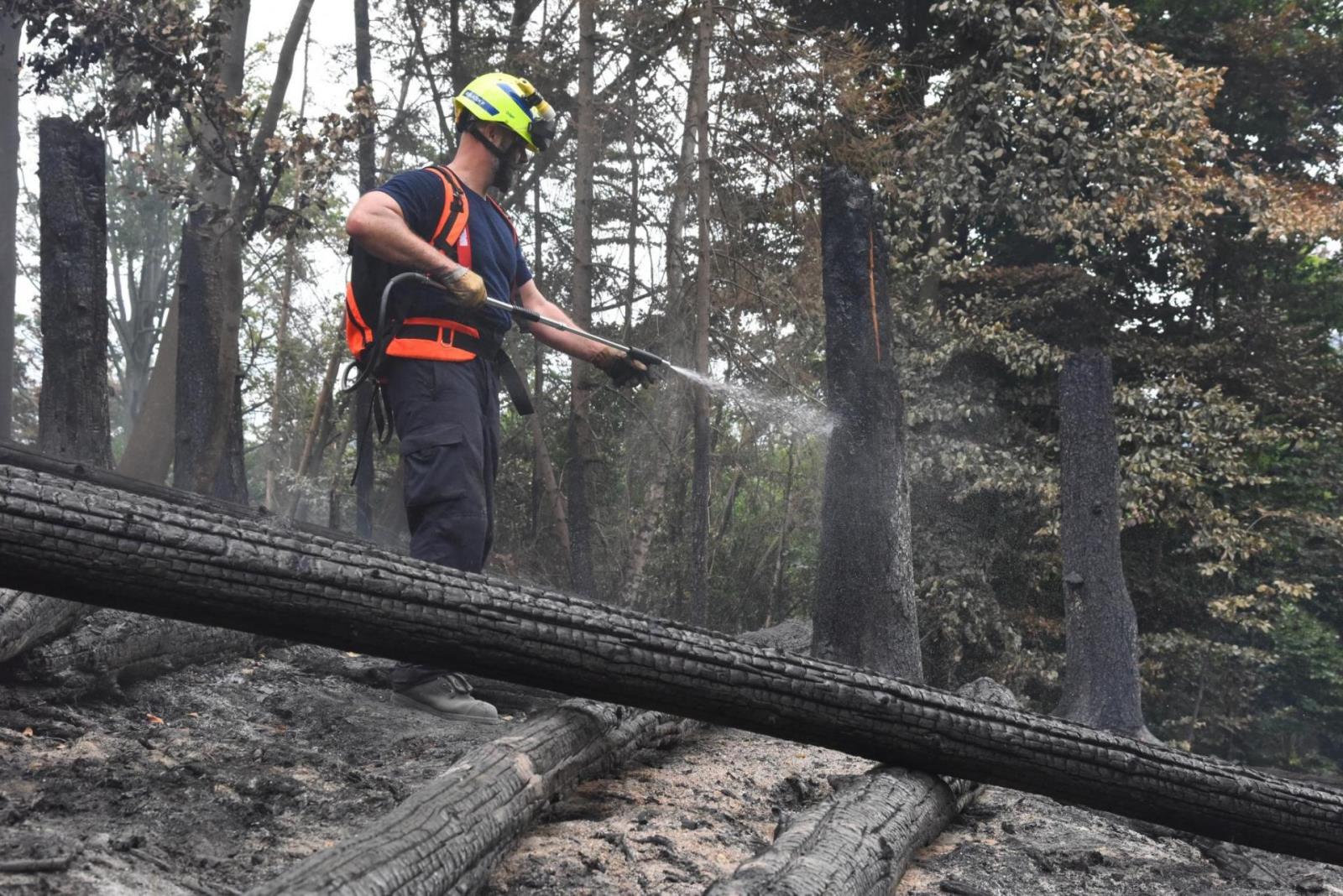 Pracovníci lesní správy neustále kontrolovali požárem nezasažená místa národního parku, zda se neobjevila skrytá ohniska, a pomáhali hasičům se zpřístupněním terénu pomocí těžké lesní techniky.