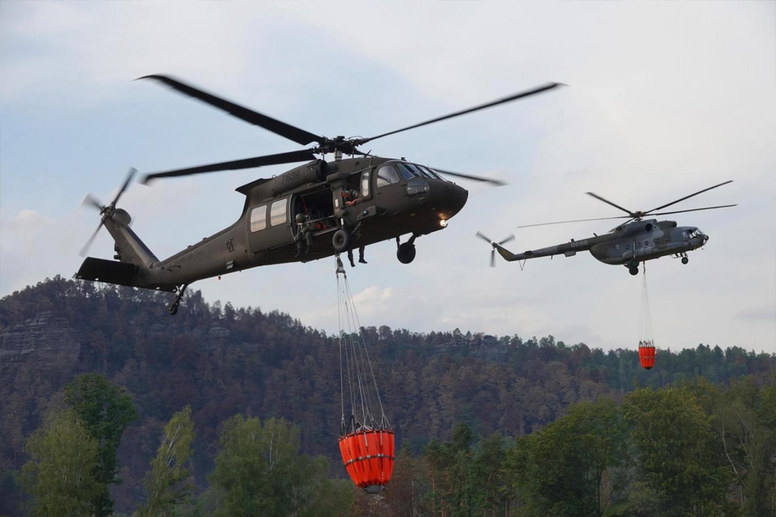Sikorsky UH-60 Black HawkUPOZORNĚNÍ: Zítra 25.7. 2022 budou pro veřejnost uzavřeny soutěsky a Mlýnská cesta z Mezné. Dále bude uzavřena silnice ze Hřenska do Mezné.